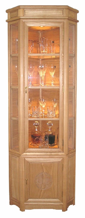 Upper cabinet with lighting, adjustable shelves spotlight and wooden back, available with mirror back.