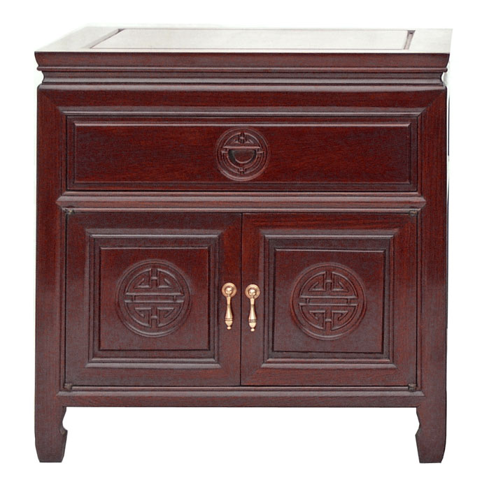 Classic style Side table with Drawer and 2 doors - Decorated with Longevity carvings.